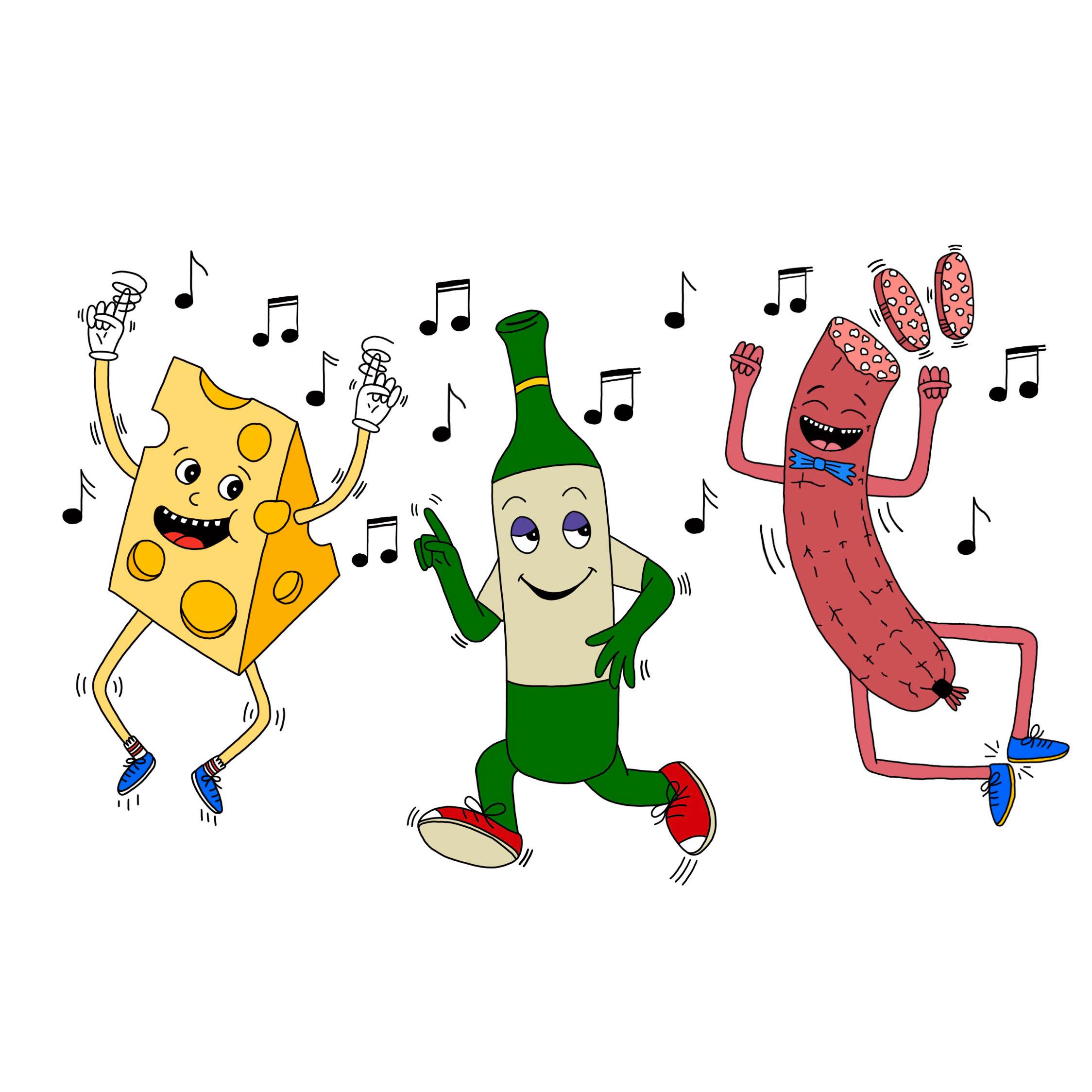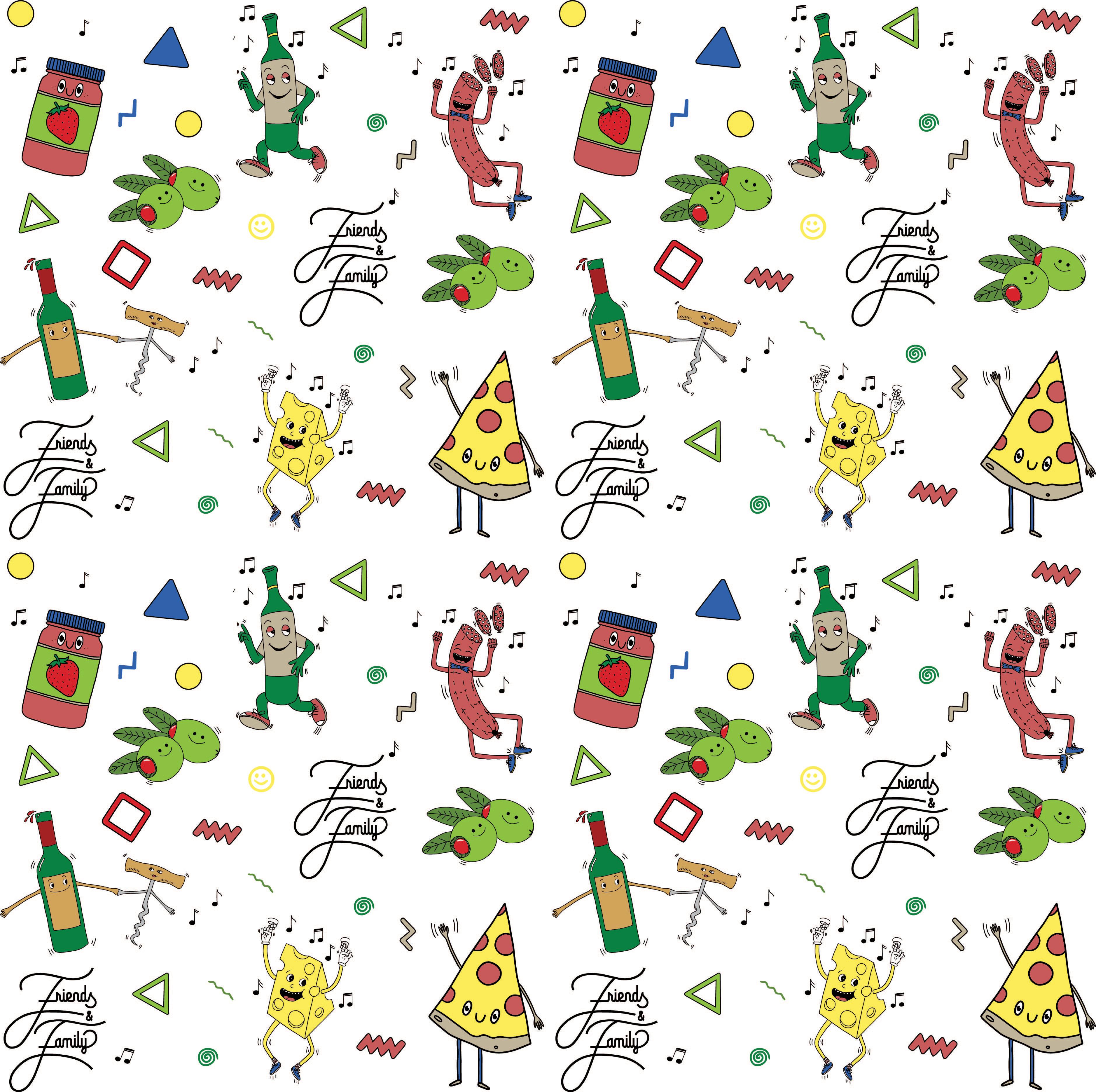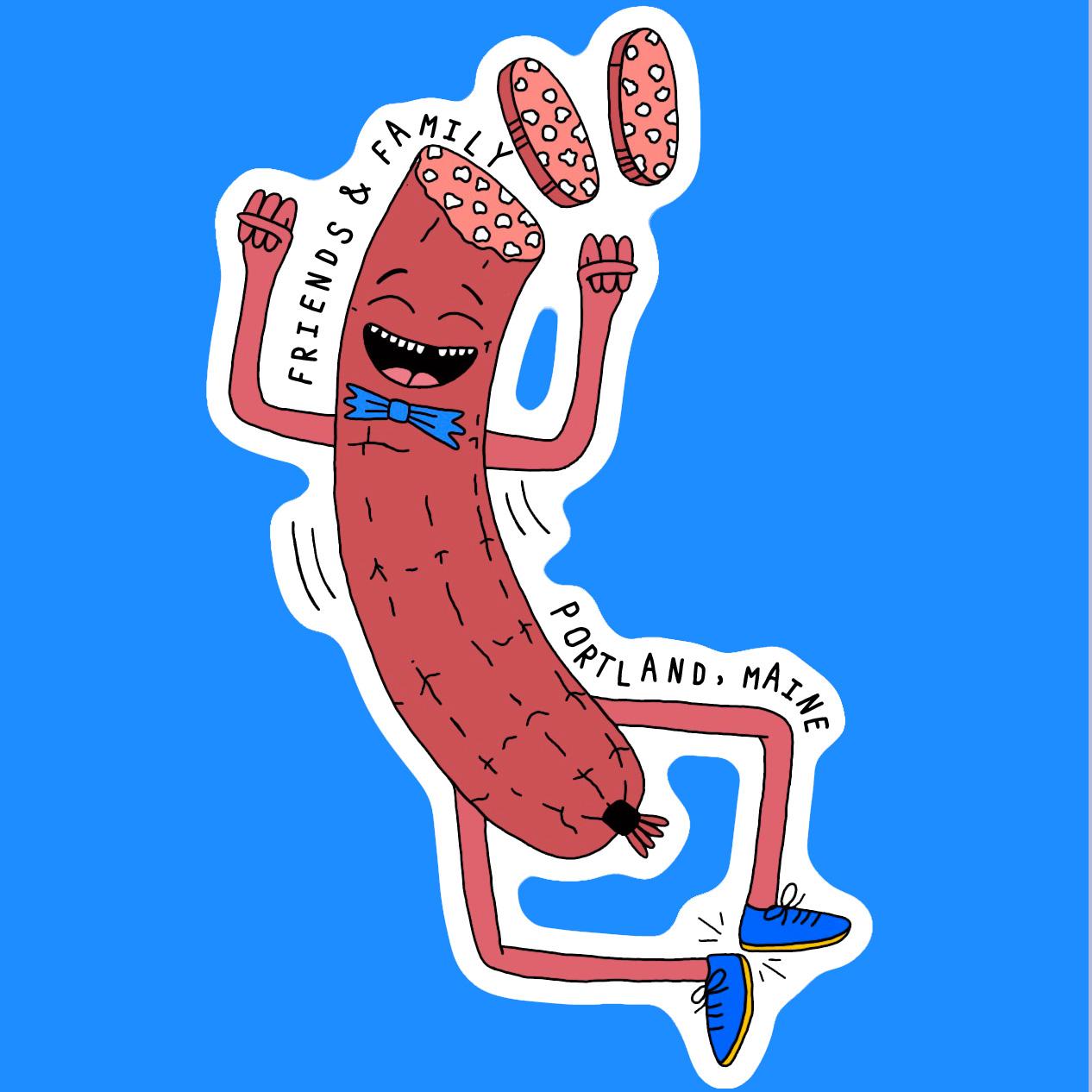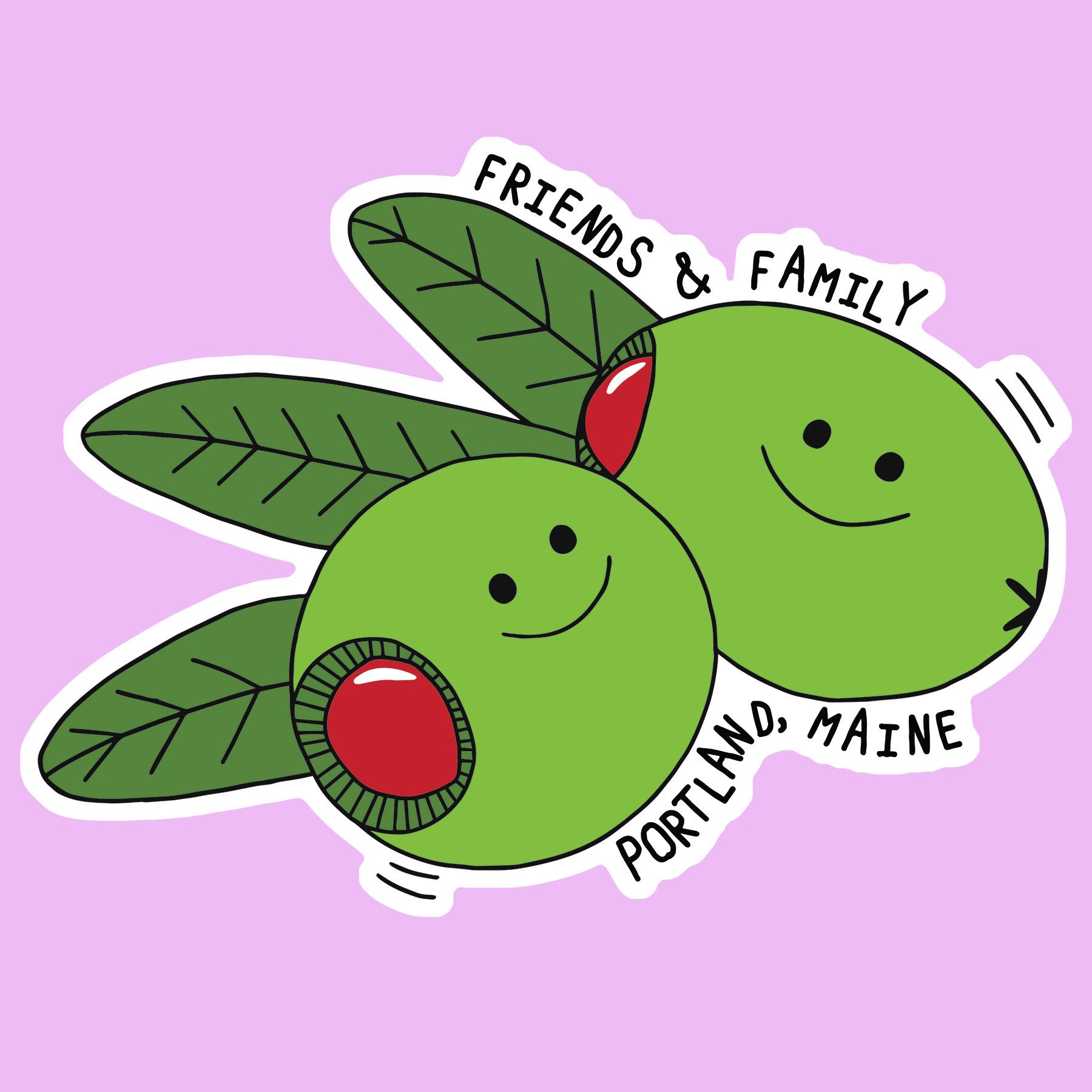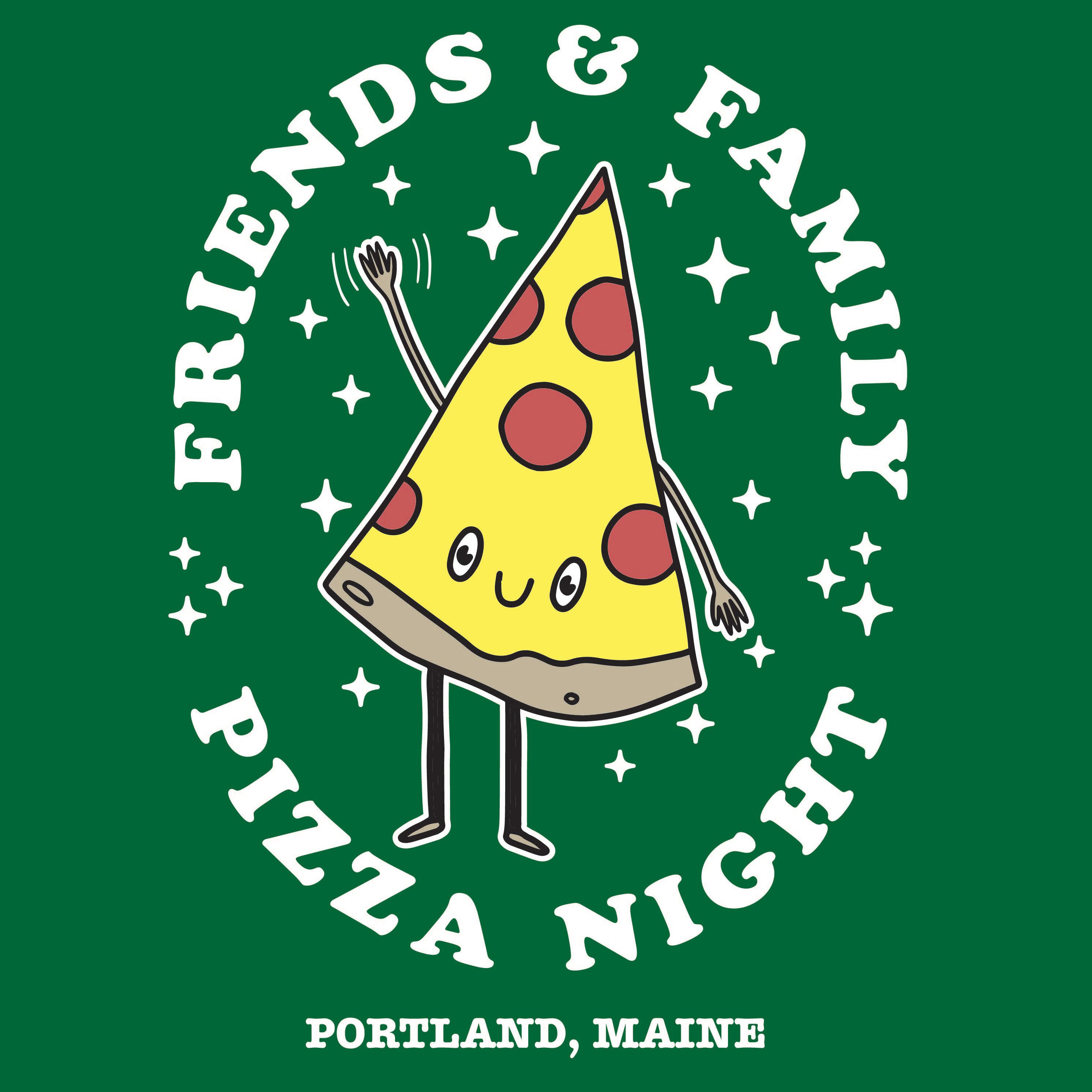 Friends & Family is a cozy spot for the best pizza and wine in Portland, Maine. I’ve had a lot of fun working with Friends & Family for a few projects over the last couple of years. I’ve designed these little foodie characters that appear on hoodies, flags, stickers, and the menu at the restaurant. From pizza and wine to charcuterie objects like sausage and olives, these little happy-dancing characters are a blast to imagine and create.