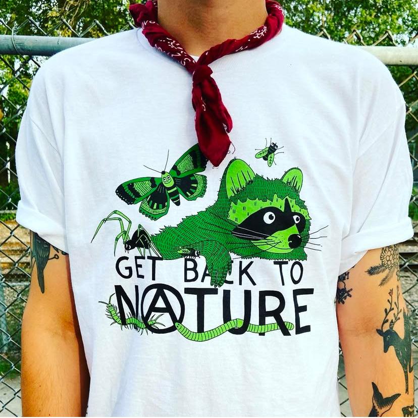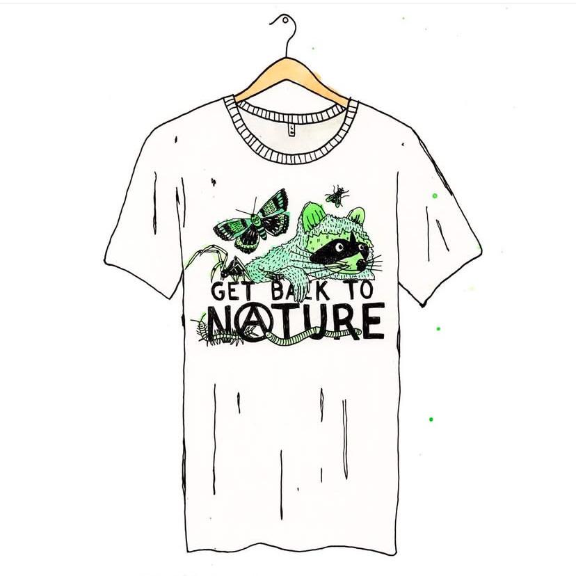 These t-shirts were originally designed as a fundraiser for a Montreal youth-run garbage clean-up initiative in the city in the first run. I love bugs and animals, especially all the urban animals you see on a walk around the city, it’s like a safari without leaving home. I got a bunch of photos of all the cool ways people have modified these shirts including tie-dying and cropping them. I cut the sleeves off of mine and I wore it for a week on a long bike camping trip. The print held up and it looks as good as the day I got it from the shop.
